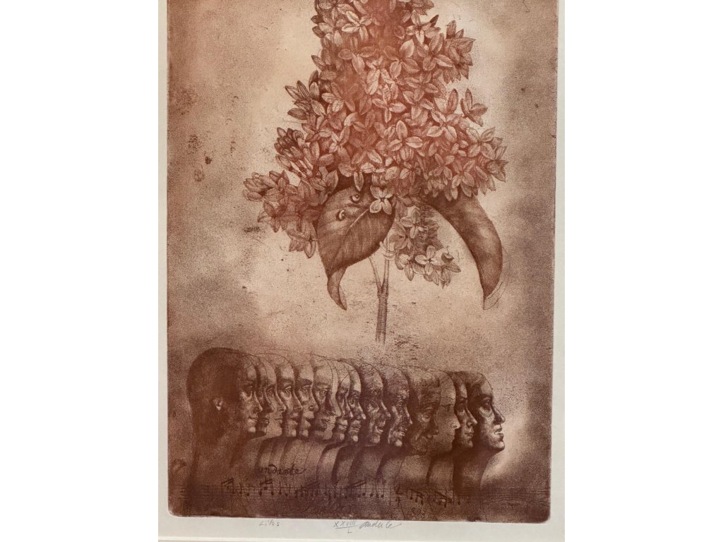 Krasny lept od Jiřího Anderleho, který zaujme jak sběratele tak nadšence do umění. Je to krásný doplněk do interiéru nebo do sbírky. Lept má rozměr ve výřezu 17,5 x 26,5 cm, je signován uprostřed , číslováno XXVIII/L, rámován, pod sklem