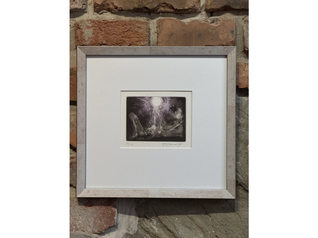 Karel Demel - grafika, rozměr 10,5 x 7,5 cm, signováno vpravo dole, číslováno 52/100, rám, sklo.